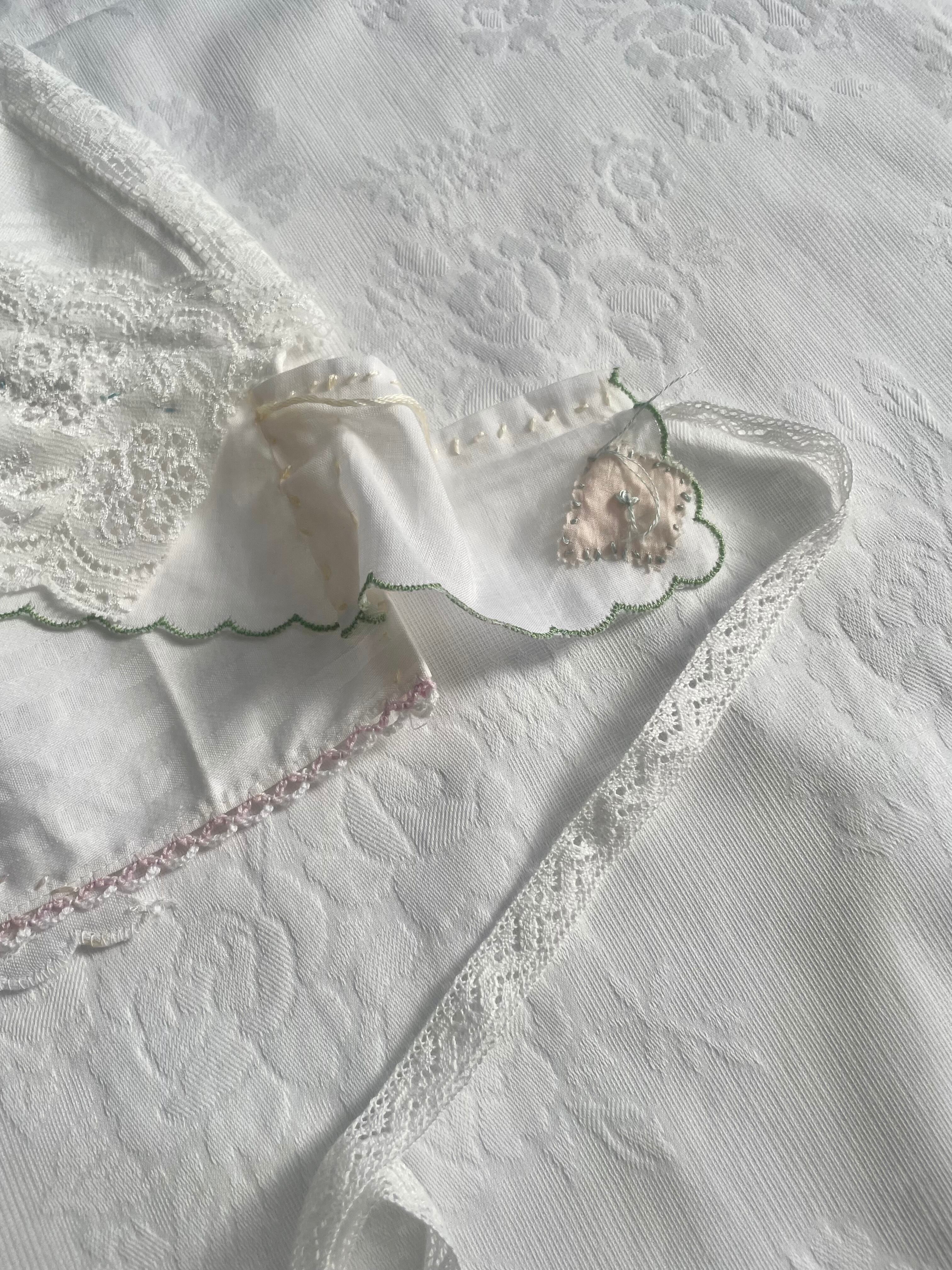 ヴィンテージのハンカチでバブーシュカ、つくってみました♩