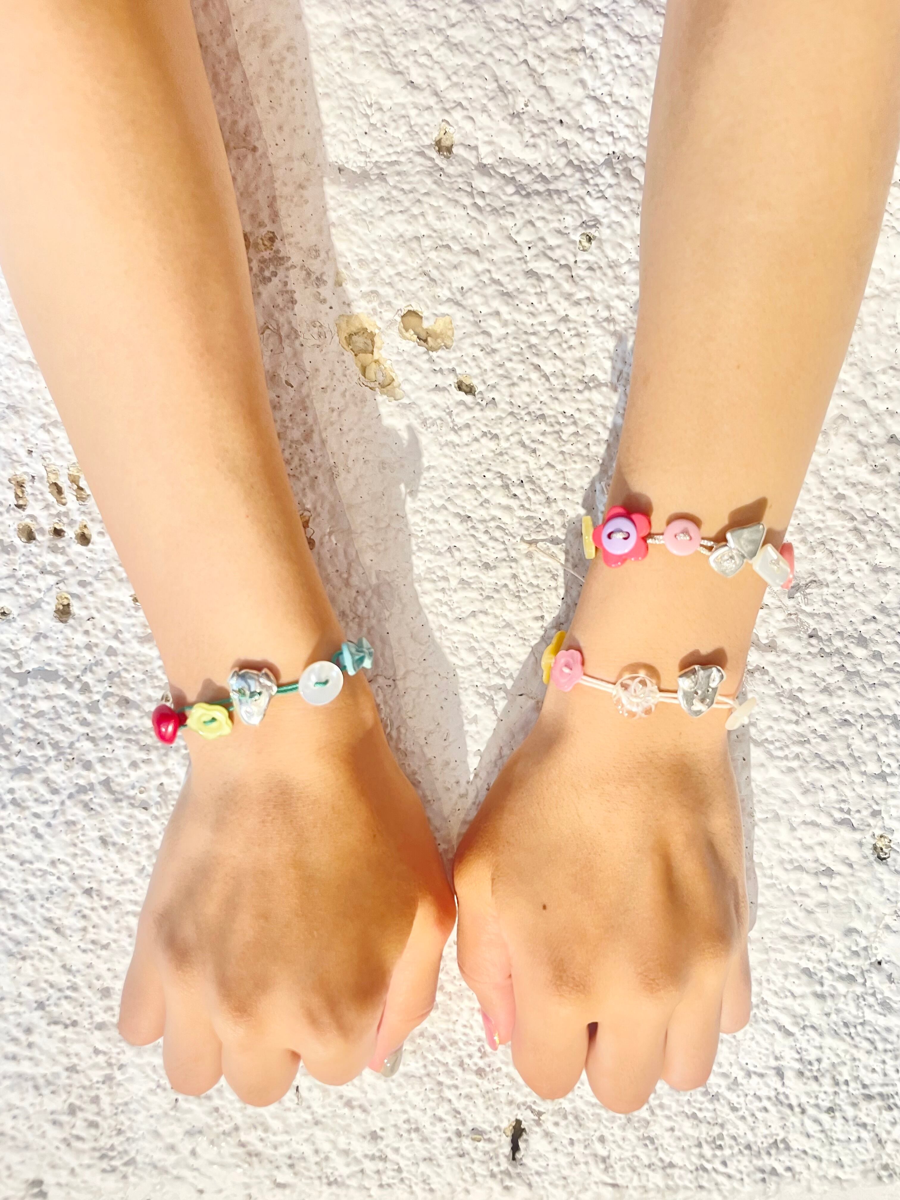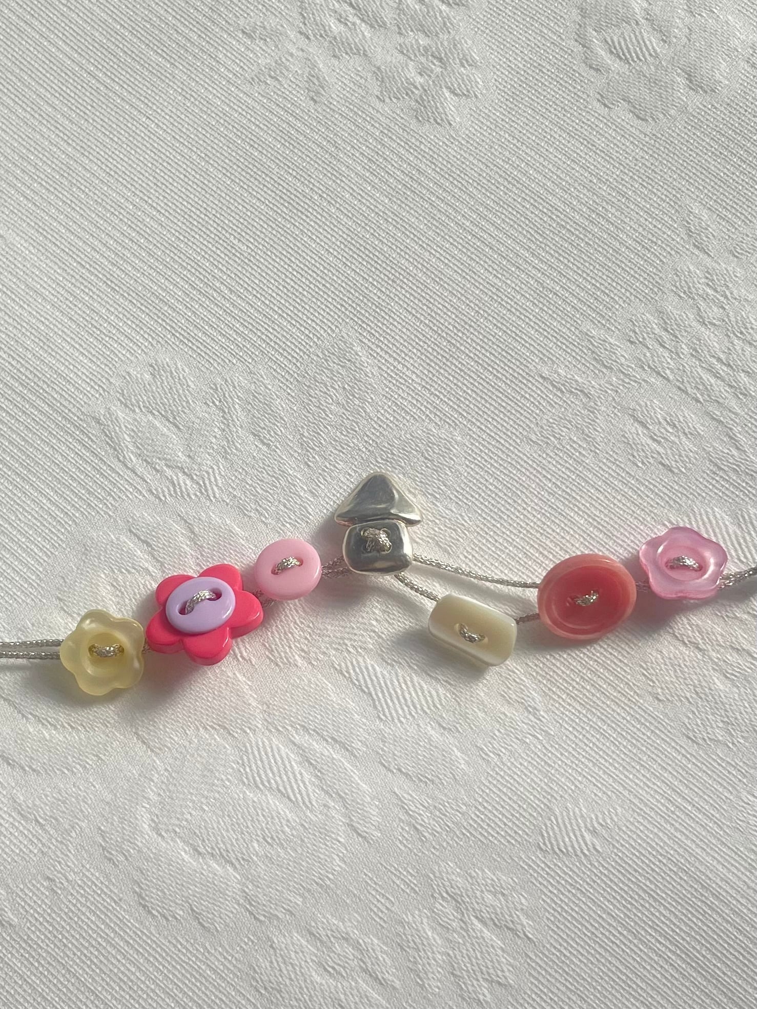 てづくりのシルバーボタンと集めていたヴィンテージのボタンや貝などのボタンを合わせて、ブレスレットを作りました♩