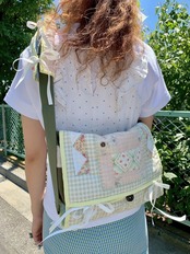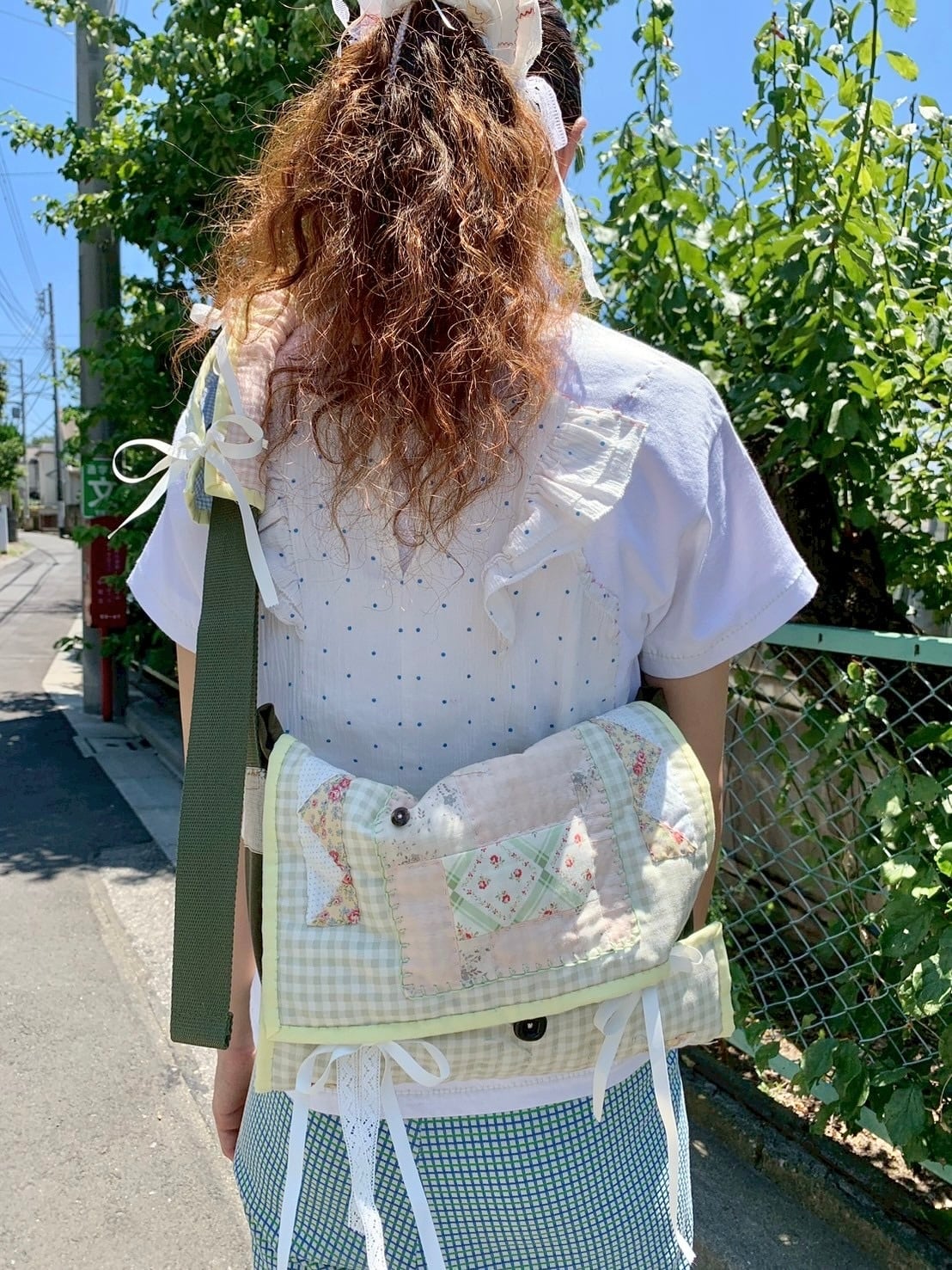 懐かしの枕カバーに見立ててパッチワークキルトの枕カバーをつけたカバンです♩