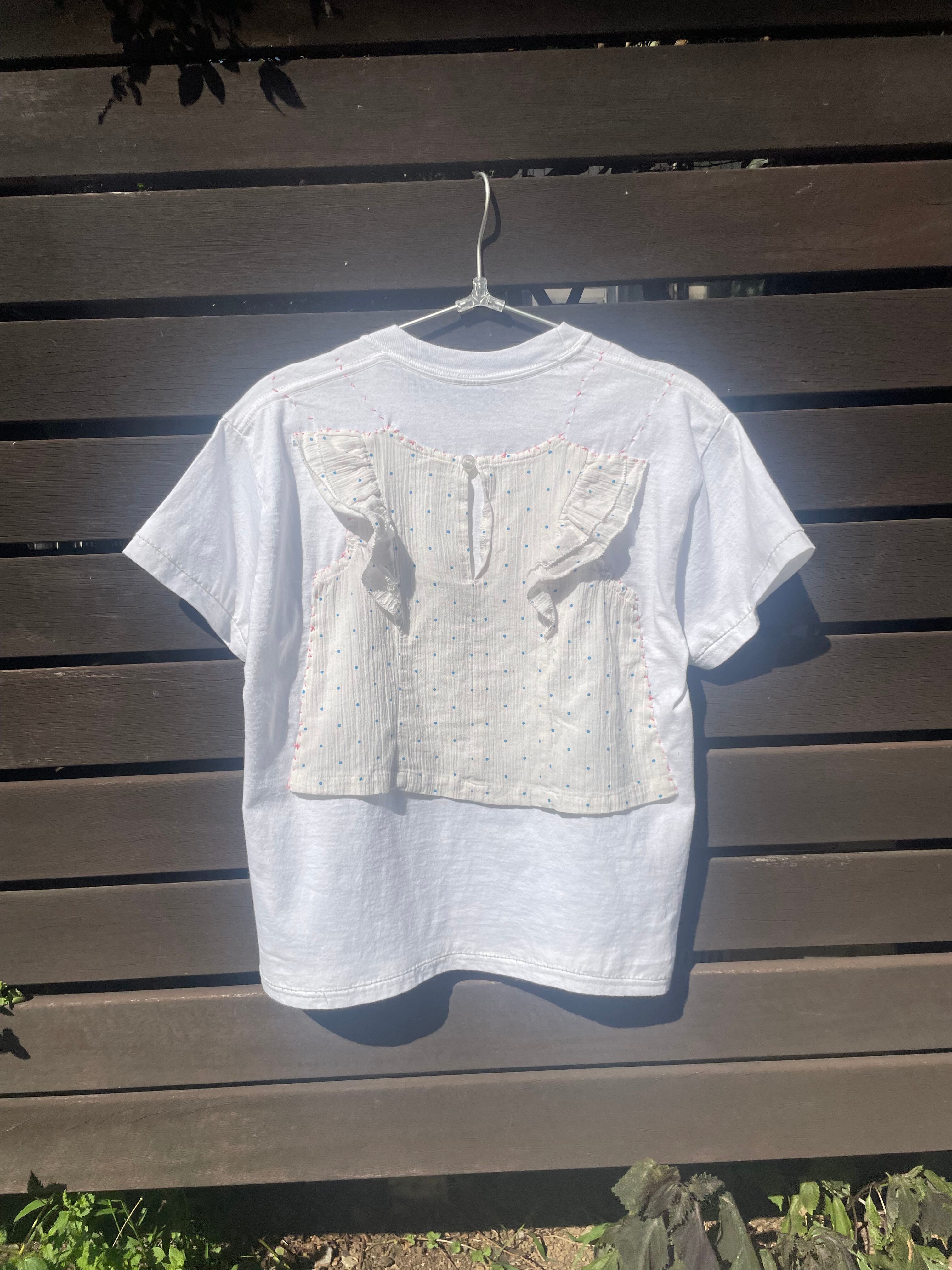 Tシャツの上から服をレイヤードしたみたいに着ることができて、いつものTシャツにアクセントをつけて着られます♩