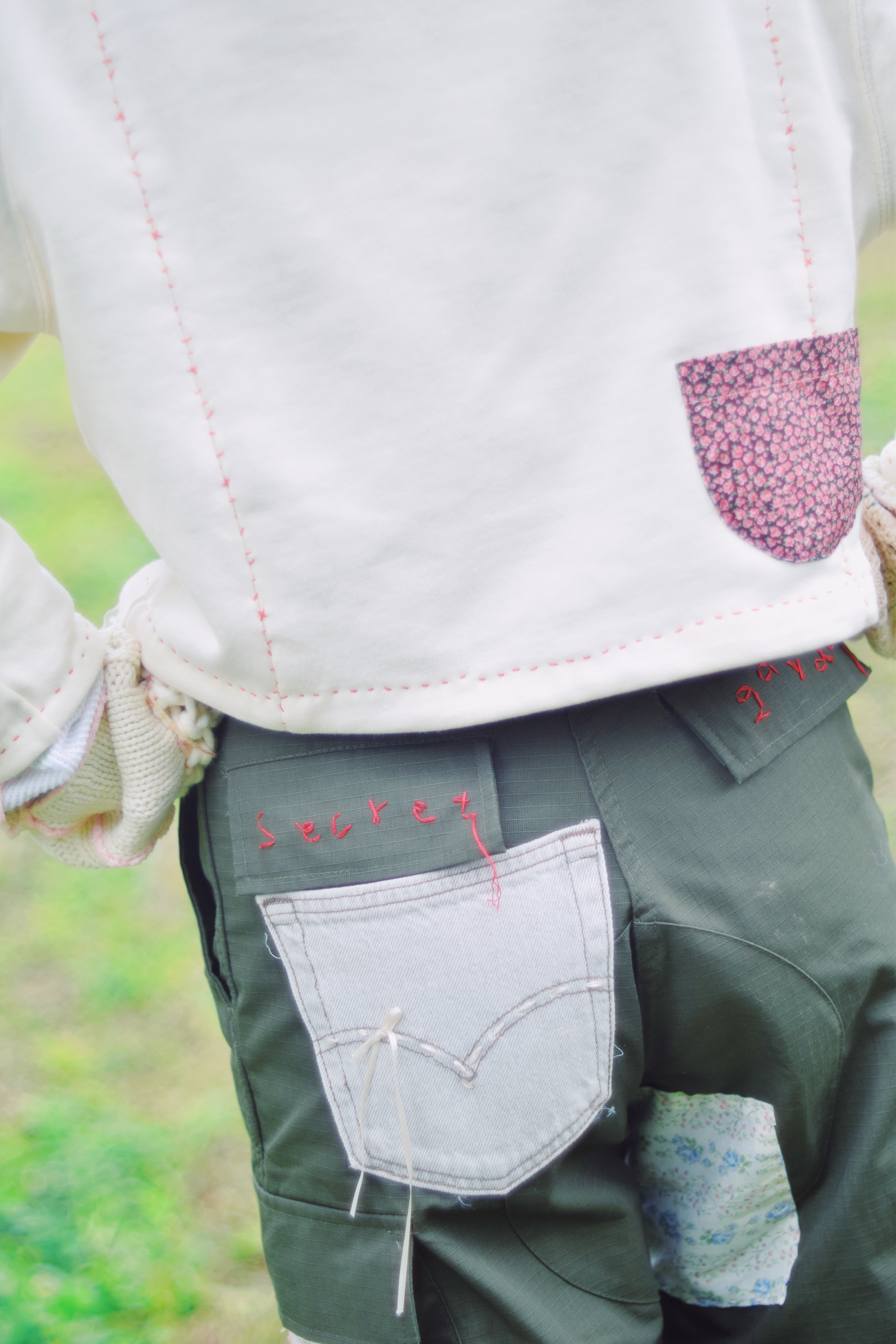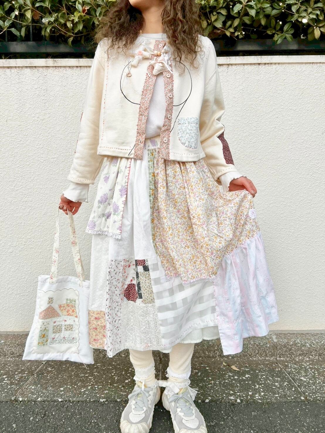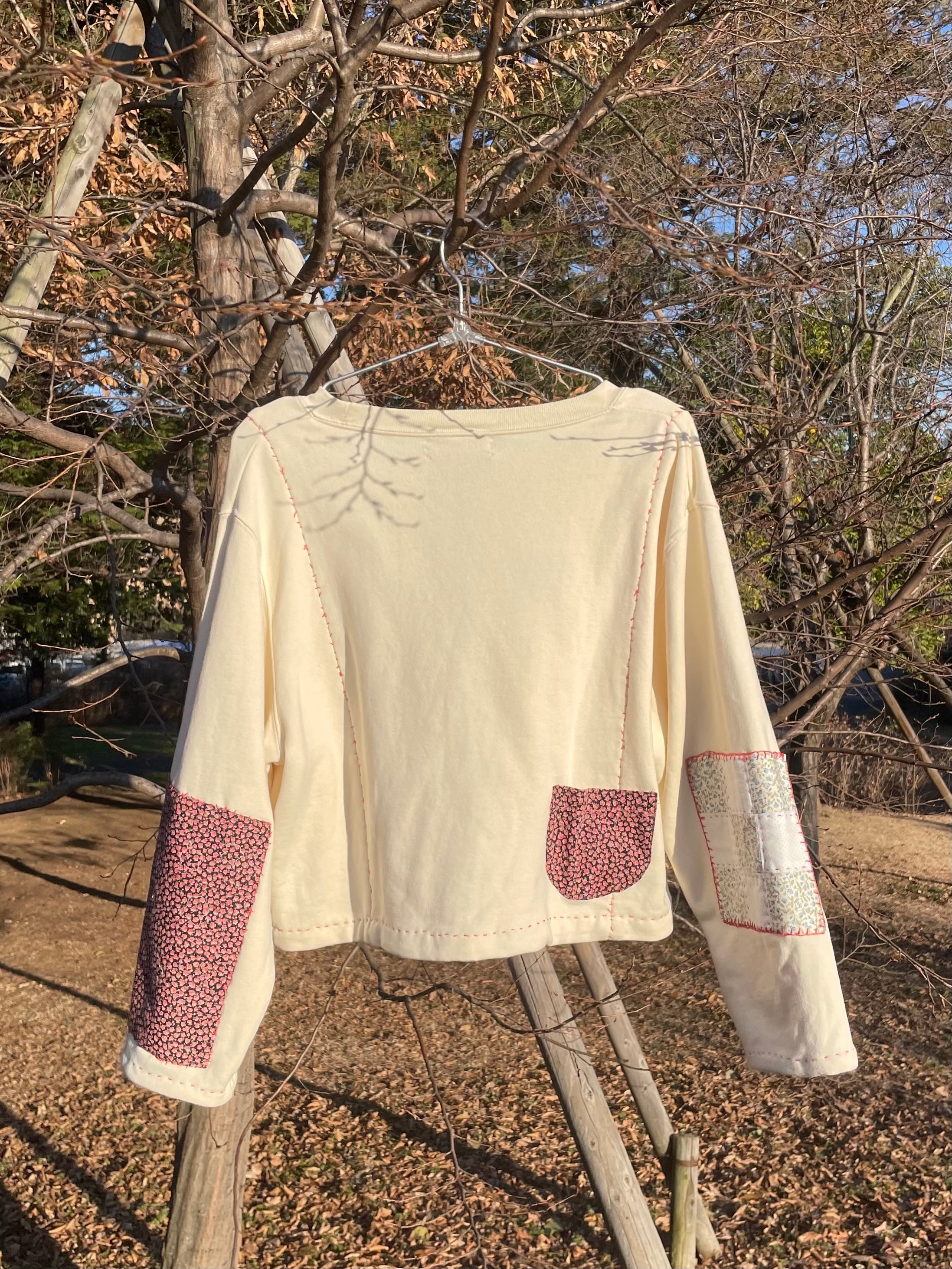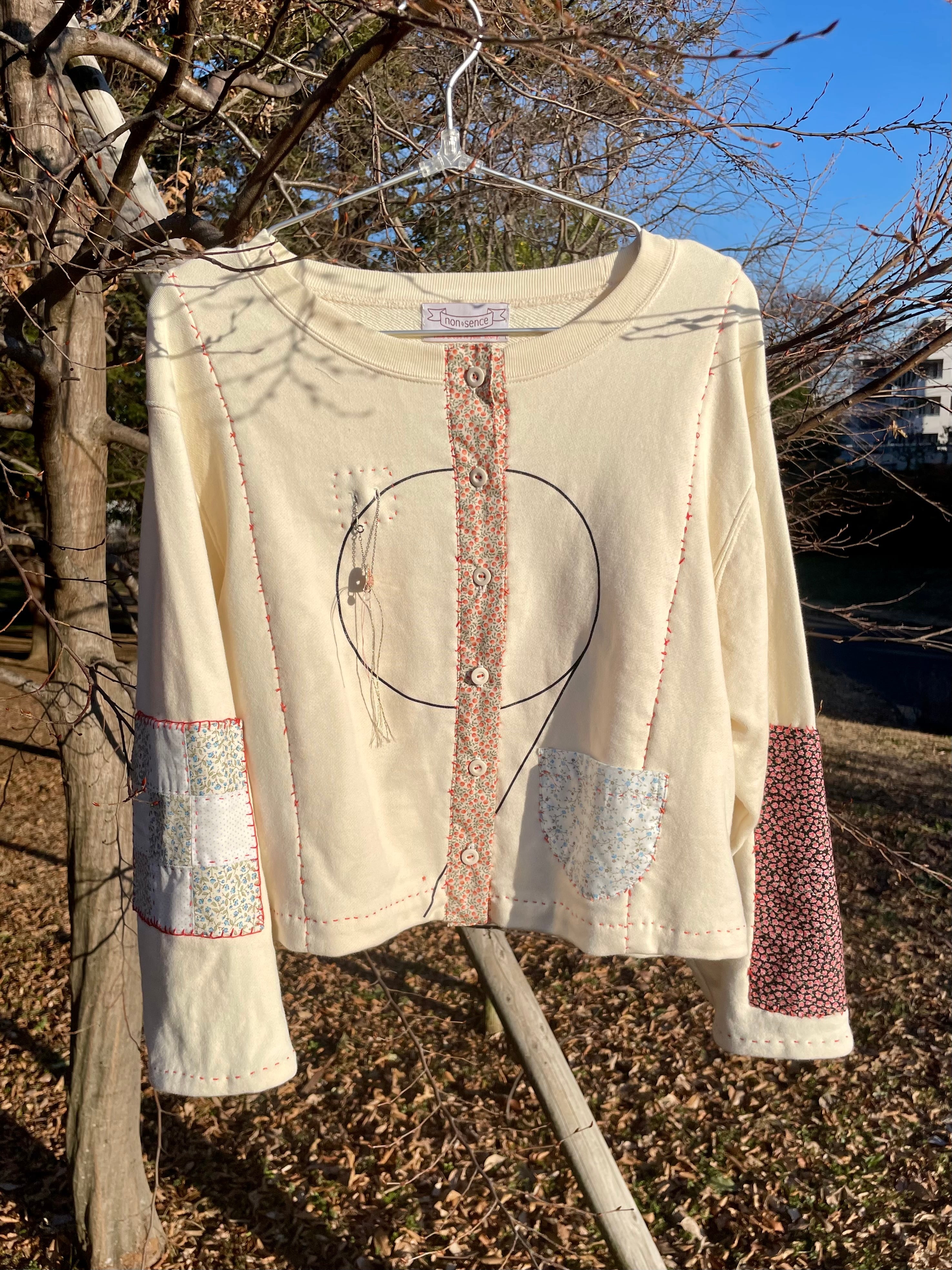 古着のスウェットをリメイクしてカーディガンに仕立てました。