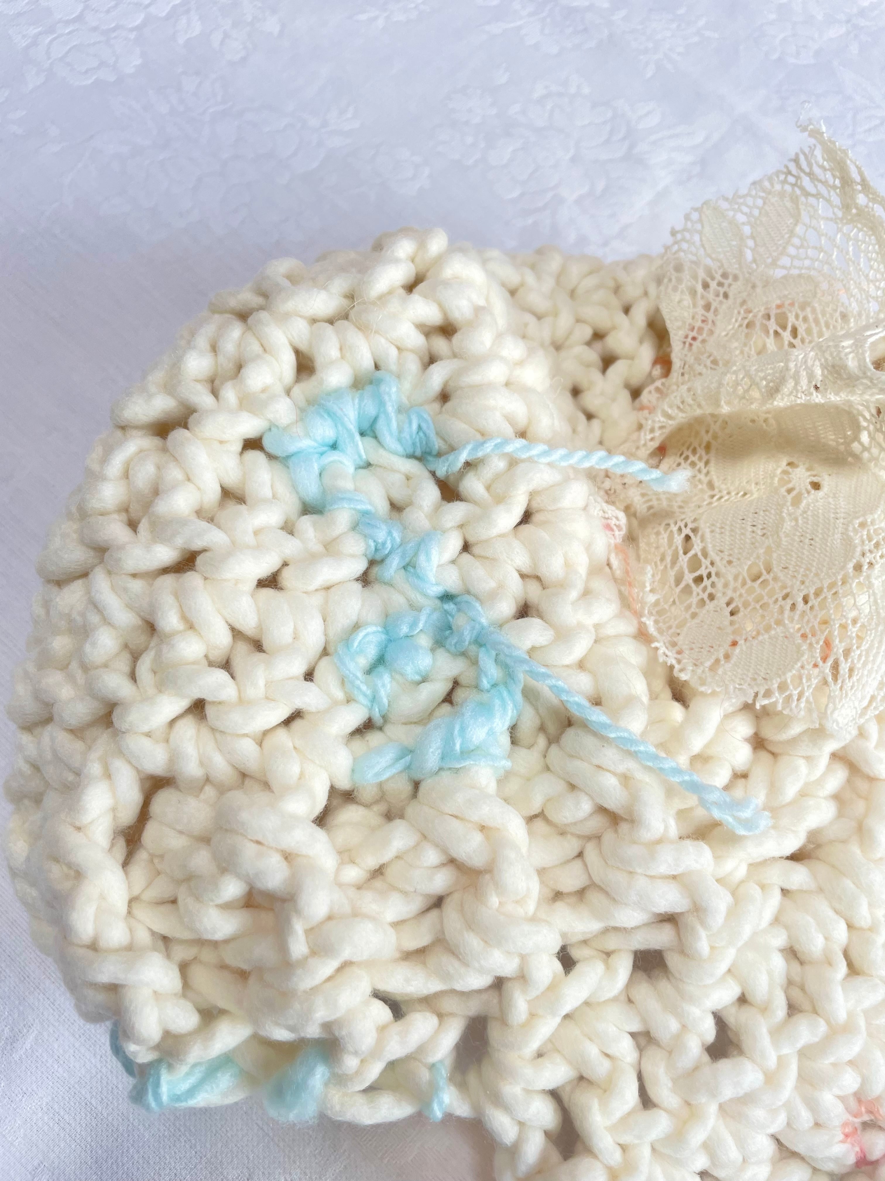 太めの毛糸で編んだニット帽です。