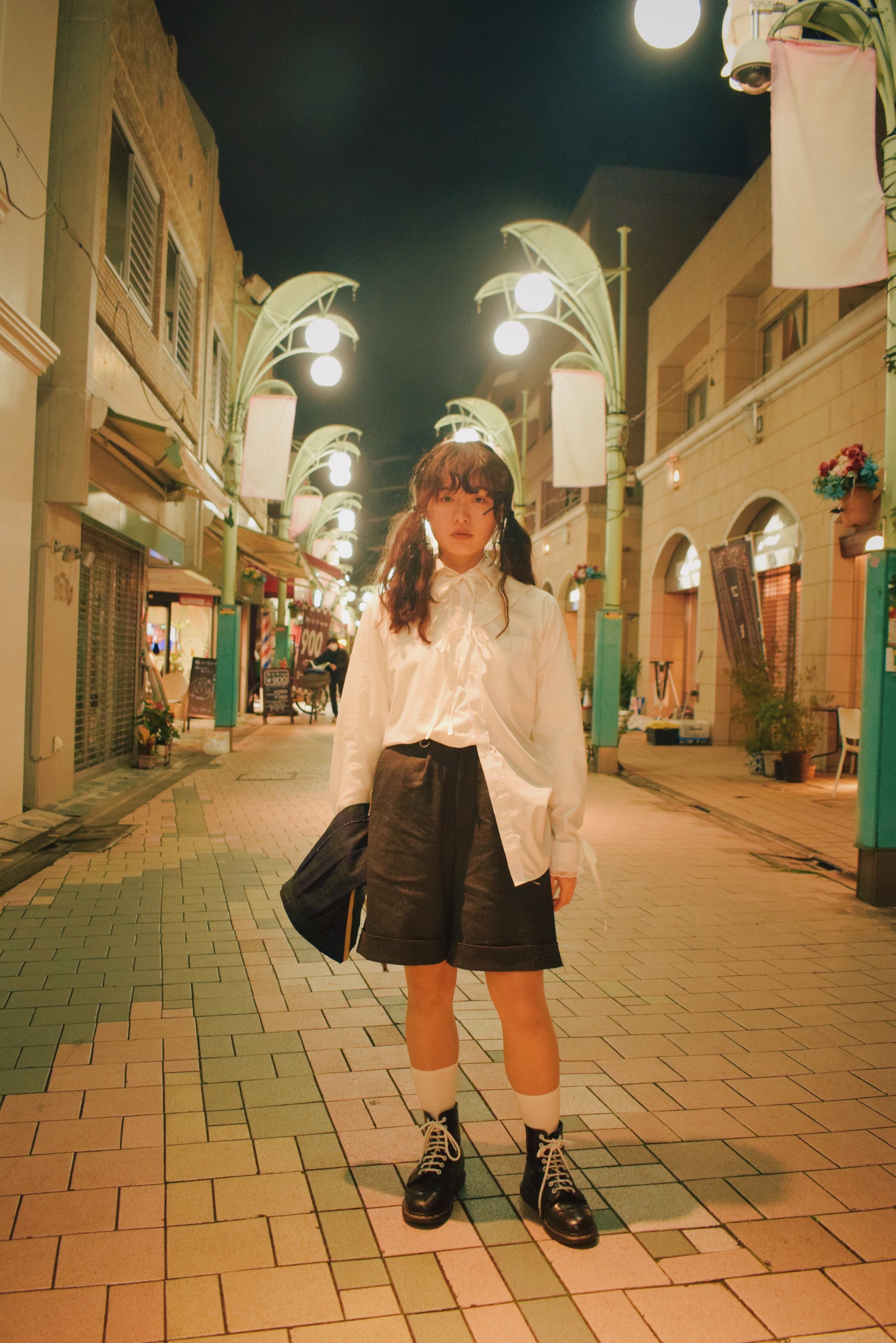 外したら、すっきりしたシルエットの元気なショートパンツに。
