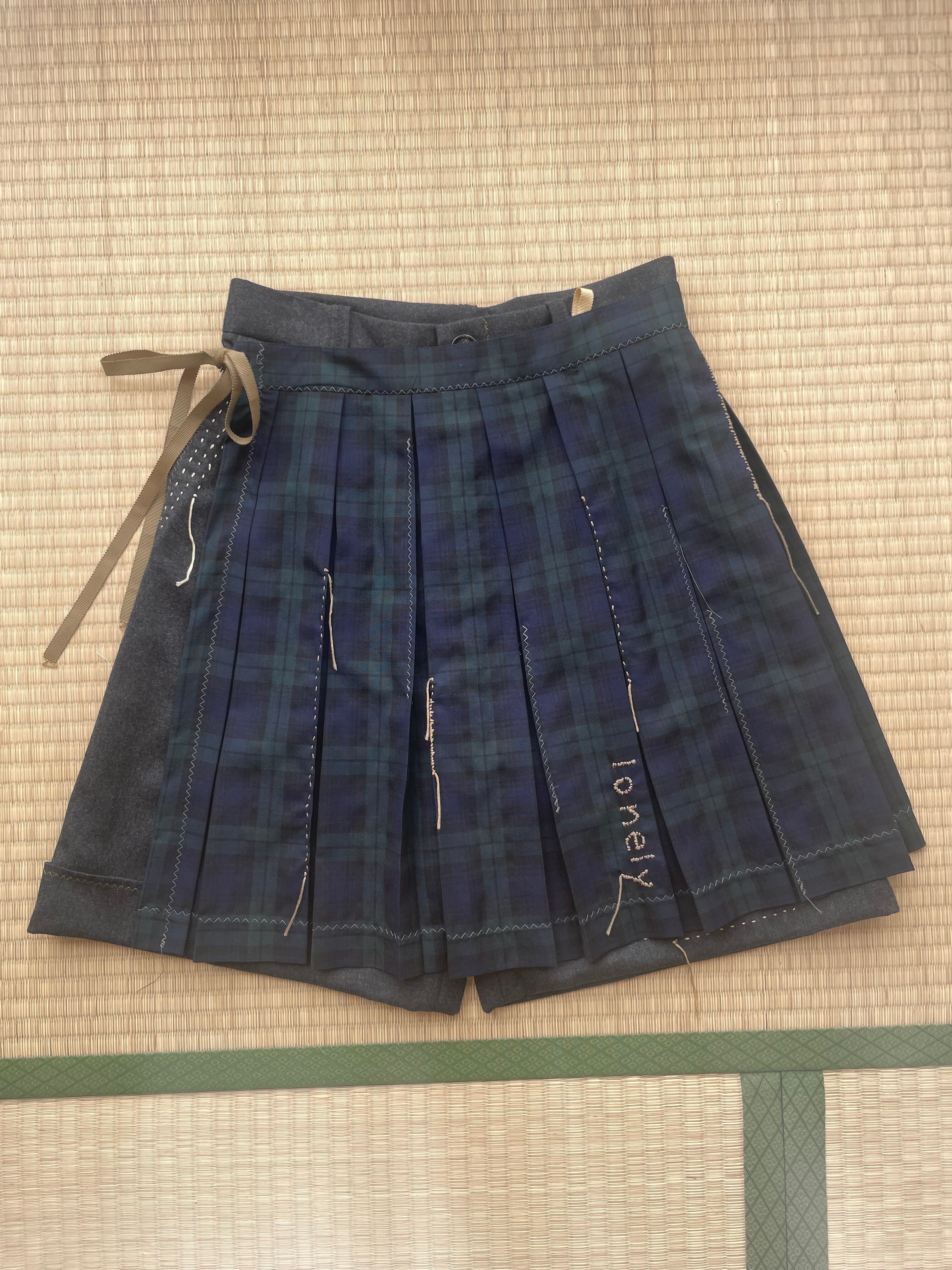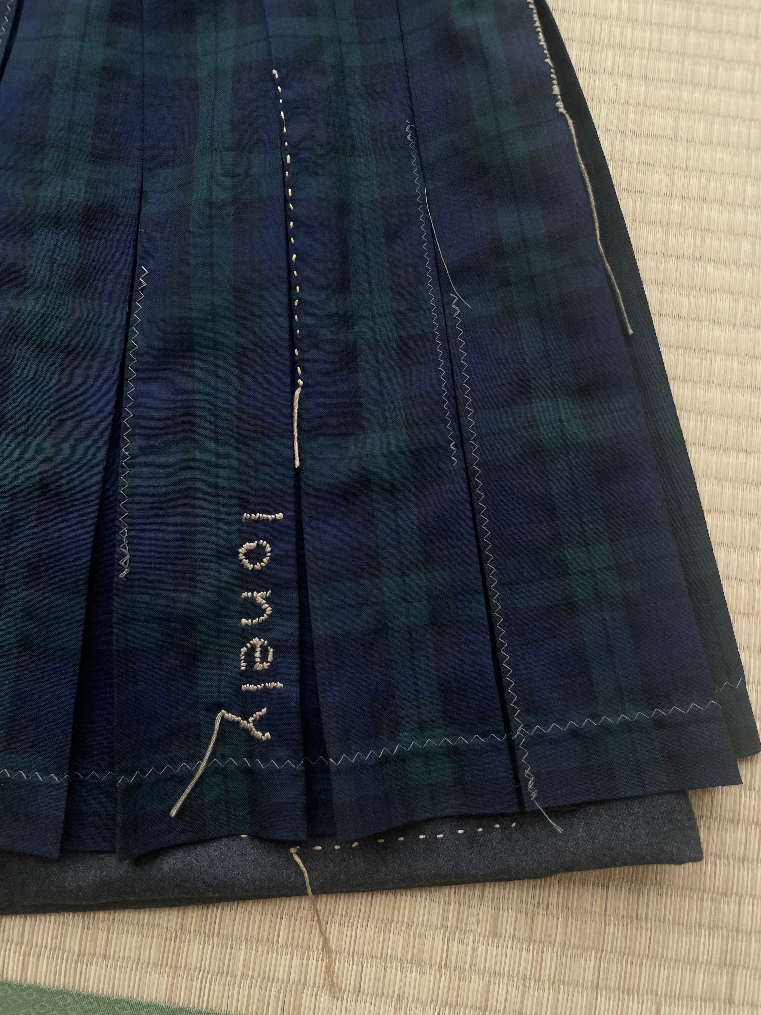 プリーツ部分をつけたら、表は制服のプリーツスカートに。
